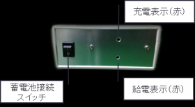 2. 給電表示:鉛蓄電池にエネルギーがあり負荷に給電可能なときは点灯、 負荷に給電できないときには消灯